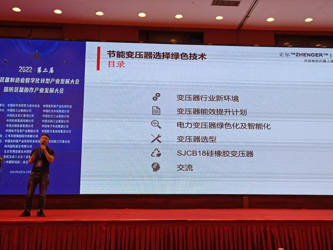 會(huì)上,正爾科技董事長(zhǎng)金勇華上臺(tái)致辭,他表示,“當(dāng)今世界正經(jīng)歷百年未有之大變局。面對(duì)國(guó)內(nèi)外經(jīng)濟(jì)發(fā)展諸多不穩(wěn)定因素,節(jié)能變壓器的創(chuàng)新及研發(fā)在國(guó)防軍工領(lǐng)域和節(jié)能變壓器領(lǐng)域顯得尤為迫切。正爾科技的SJCB智能硅橡膠節(jié)能變壓器研發(fā)創(chuàng)新緊緊圍繞‘碳達(dá)峰、碳中和’目標(biāo),服務(wù)工業(yè)企業(yè)節(jié)能減排新需要,創(chuàng)新新場(chǎng)景、強(qiáng)化新應(yīng)用。